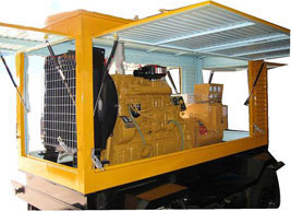中原镇柴油发电机组/移动柴油发电机组设计独具创新,机动性高、重心低、制动安全、制造精良、外形美观。 中原镇拖车车架采用槽梁焊接成框架结构,节点选择合理、强度高、刚性好;同时装有钢板弹簧悬架结构;拖车采用高度可调节插销式牵引架,适用于各种高度牵引车;采用圆形钢管焊接直通式车轴,结构紧凑,安全可靠;车架四角设有机械式支撑装置,配备惯性行车制动、驻车制动和脱离应急制动,确保机组在各种状况下的安全;车架前端设有支撑轮,具备承受机组垂直载荷的功能的同时还具备导向功能;整车配备转向和刹车指示灯,同时装有尾灯标准插头